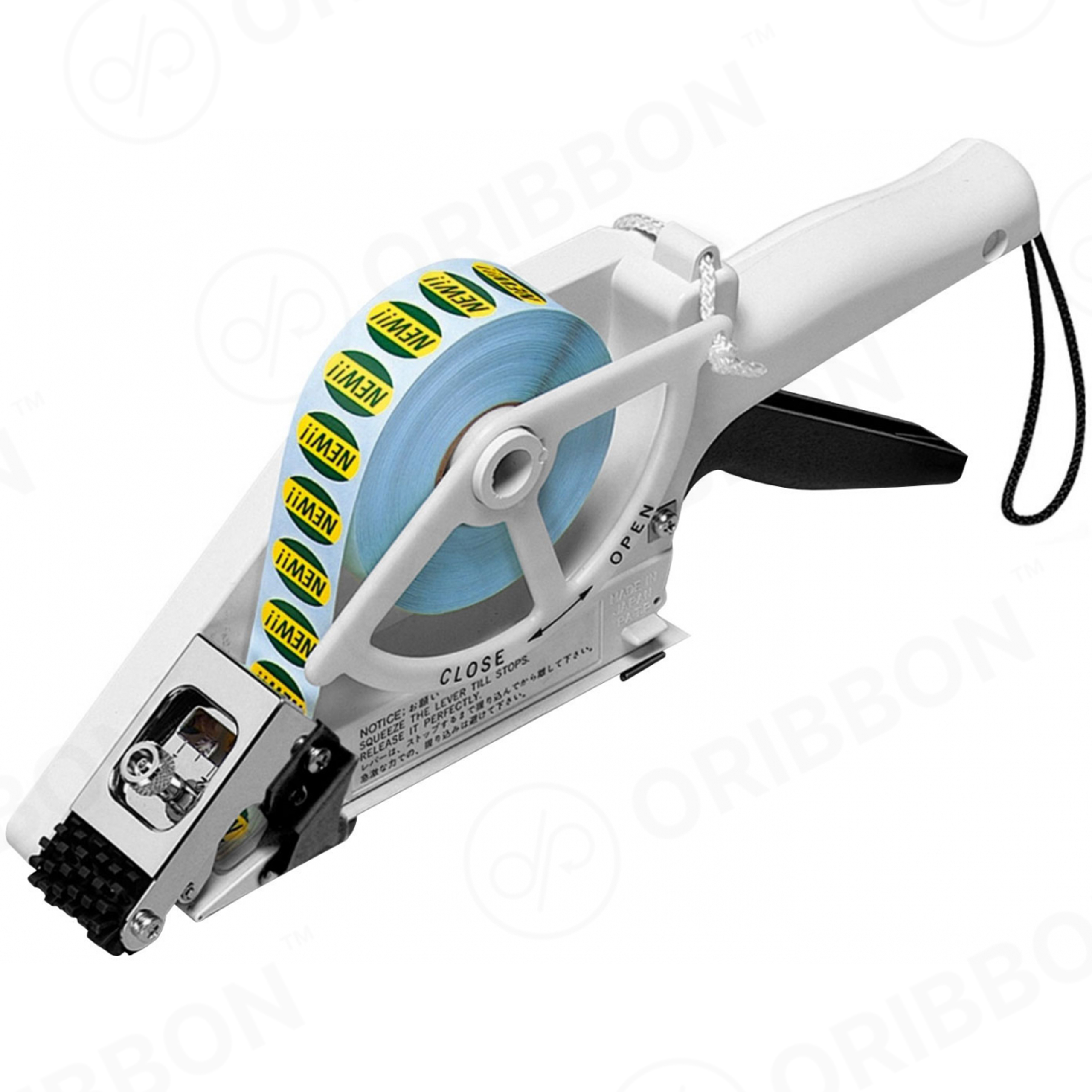 Ручная модель выполнена в виде «пистолета», в который помещается ролик с этикетками. Воспользоваться устройством просто – достаточно нажать кнопку и нанести наклейку на товар или упаковку.